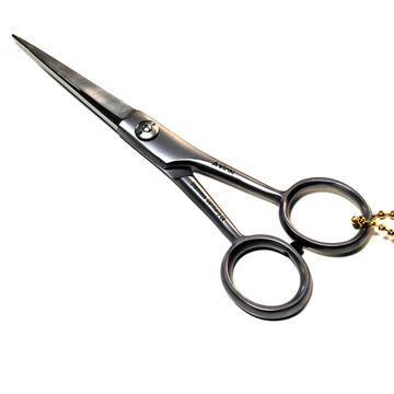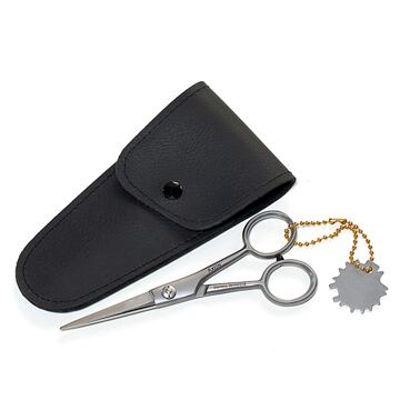 ステンレス製の散髪用/髭用カットハサミです。カットする時に毛が逃げないように刃に微細な溝が彫ってあります。またセンターネジを調節する工具が付属しておりこれにより刃の締め付け具合を簡単に調整することが出来ます。本体表面は高級感漂ういぶし銀仕上げ。本革製のケース入れが付いています。大事に使用すれば一生ものです。 メール便による送料無料対象品です。